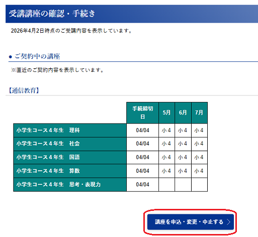 ※コースおよびレベル・プランを変更される場合、お手続きの時期により、中止する講座の会費は翌月にご返金、追加する講座の会費は翌々月にご請求となります。