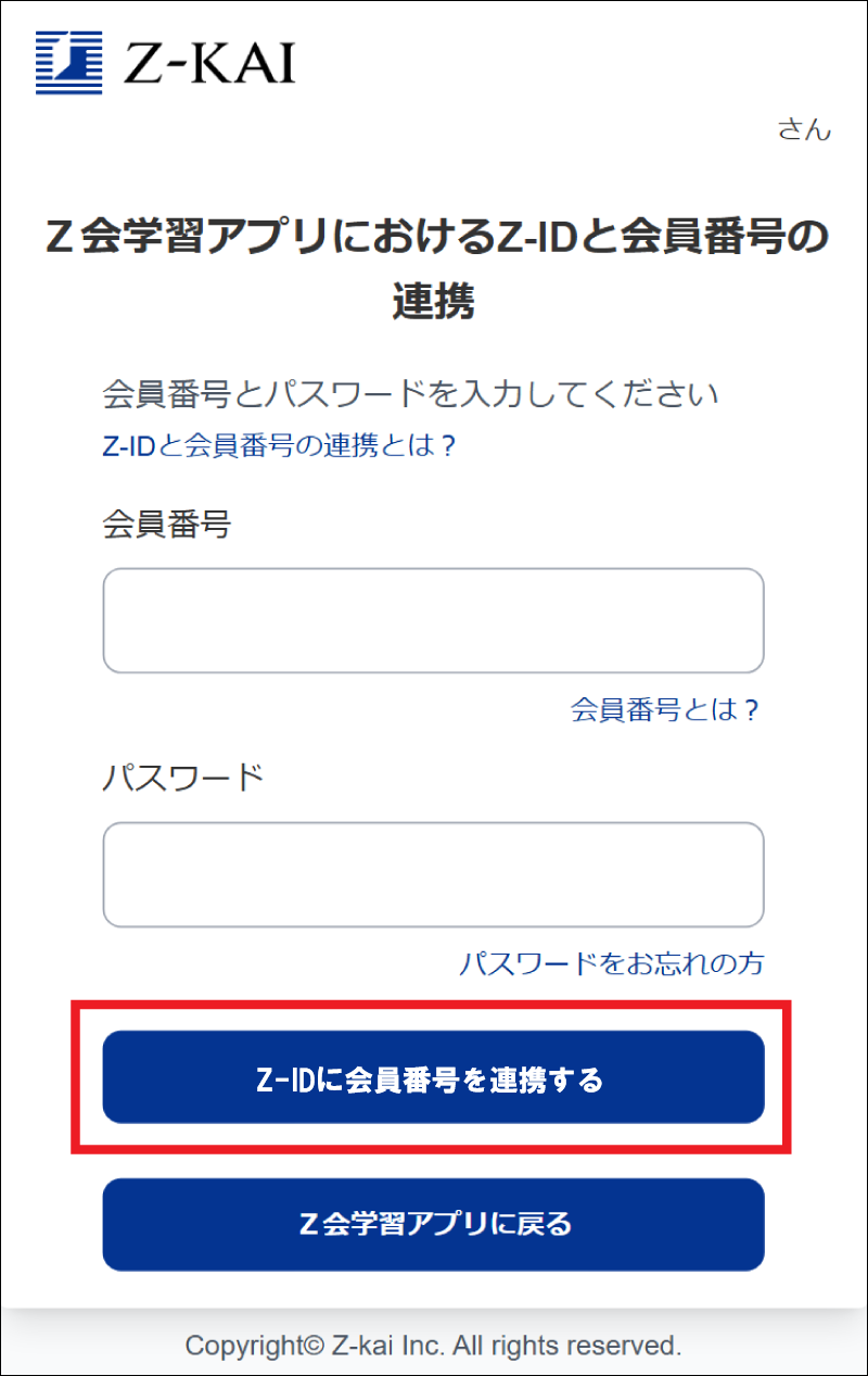 ※ここで入力いただくパスワードはZ-IDのものではありません。
