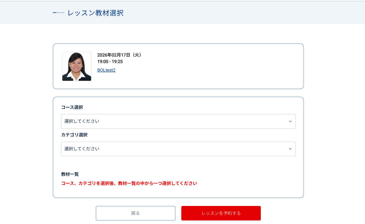 「予約済み(予約詳細)」画面から事前課題を確認します。事前課題で予習をしておくと、スムーズにレッスンを進めることができます。